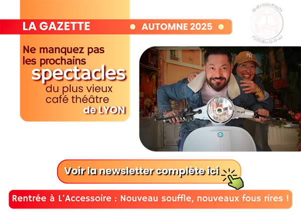 Vous cherchez une sortie à Lyon pas chère en semaine ou en week-end ? L'Accessoire vous propose des spectacles drôles, tout public, dans une ambiance conviviale.